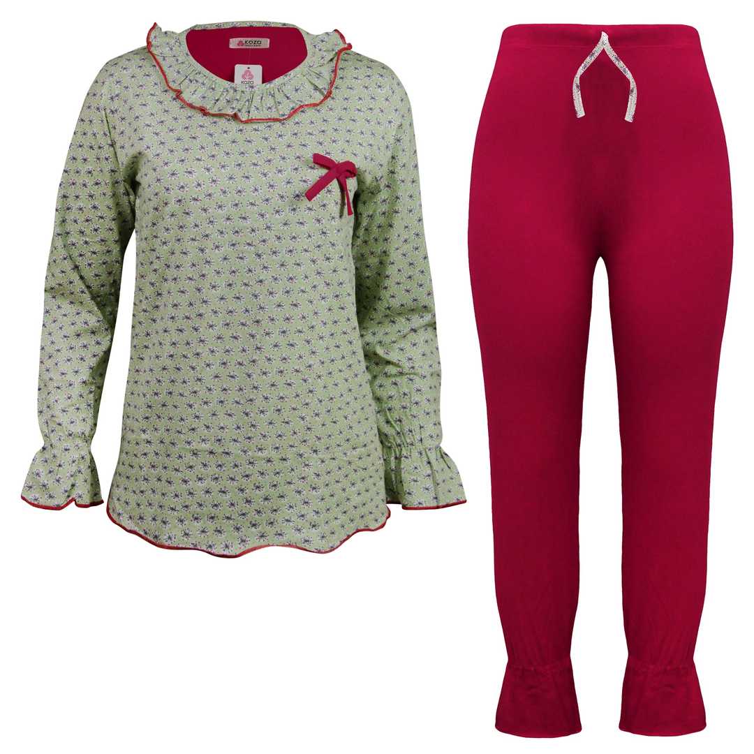 ست تی شرت آستین بلند و شلوار زنانه کوزا مدل 9155 رنگ سبز